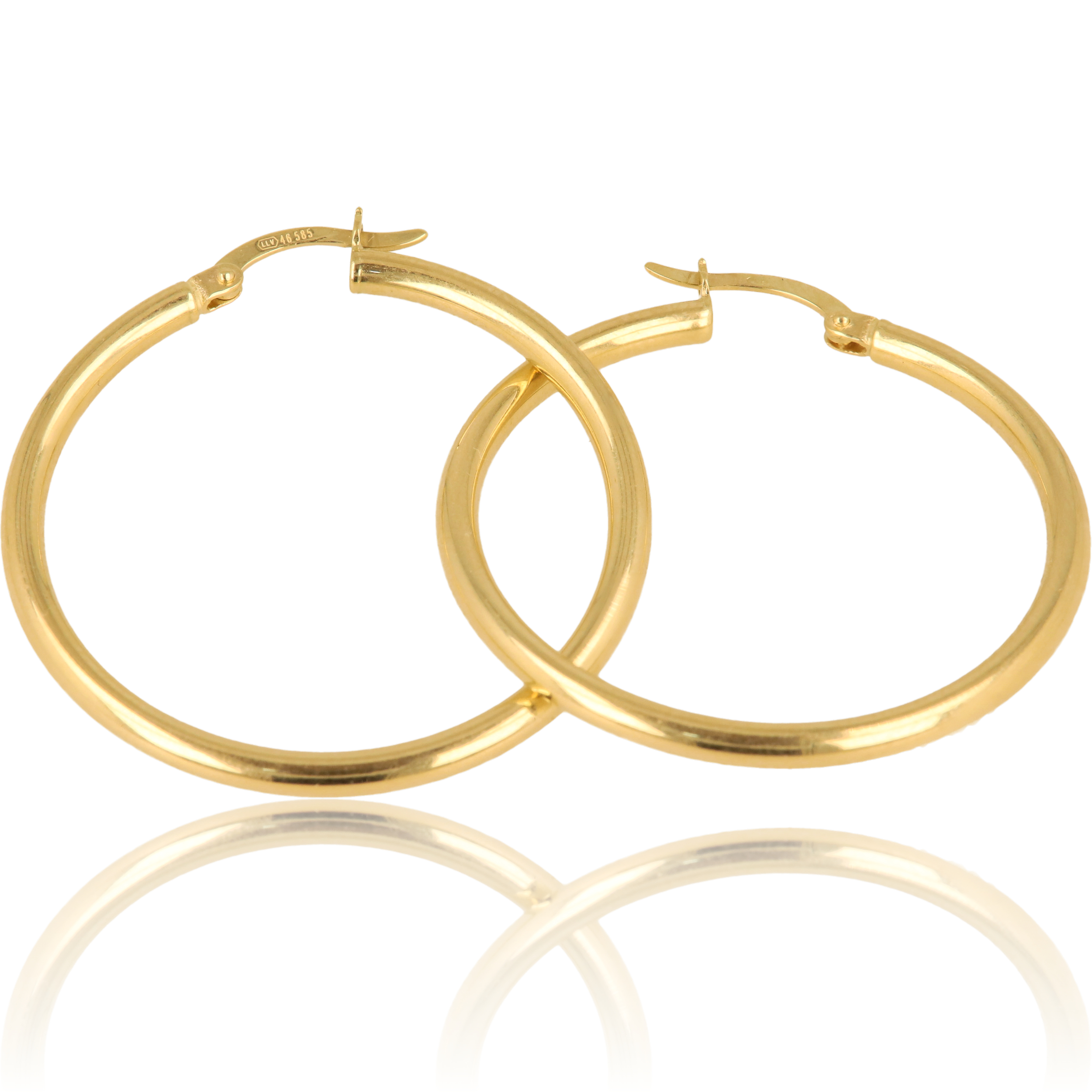 Náušnice zlaté, váha 2.05g, průměr 3,4cm, materiál zlato 585/1000