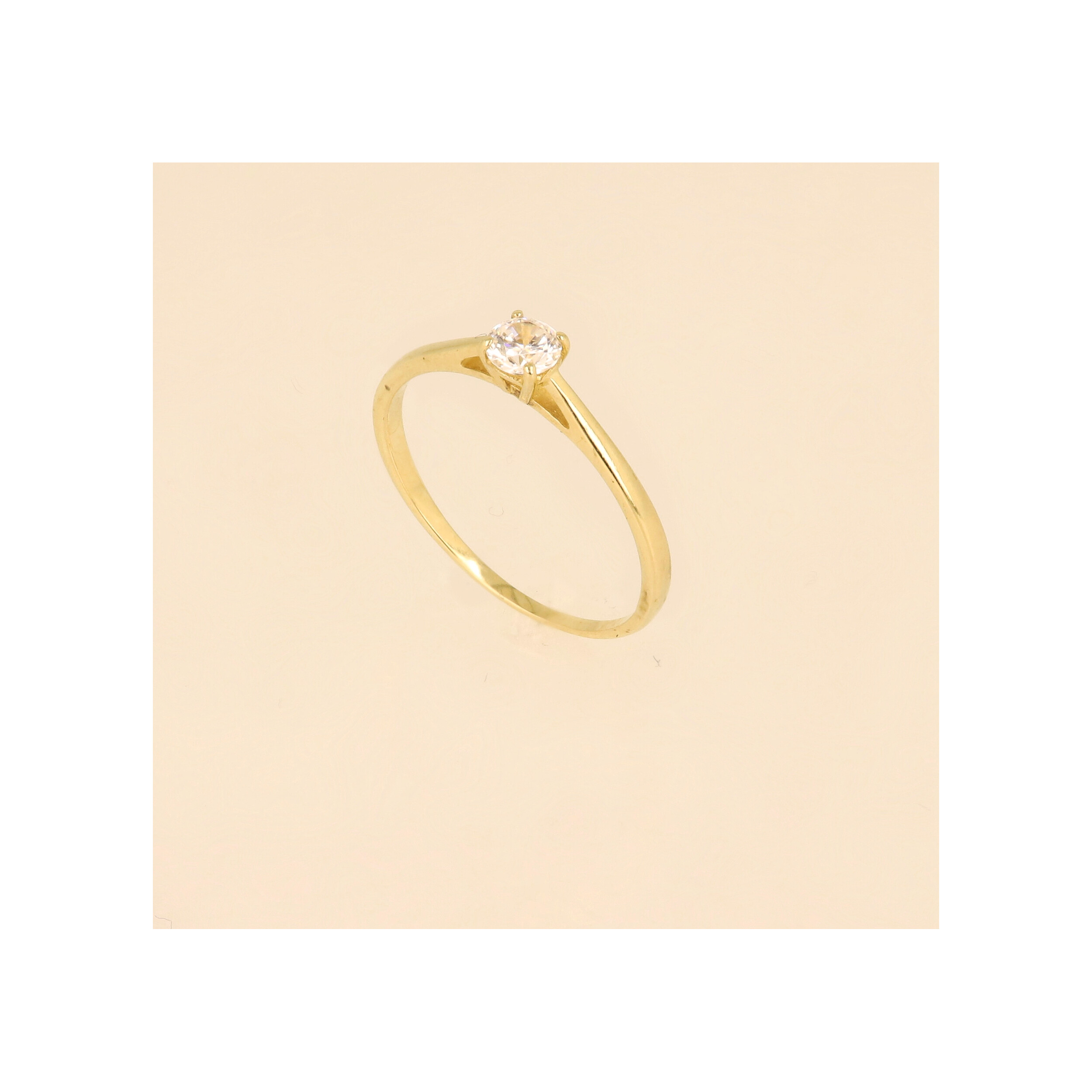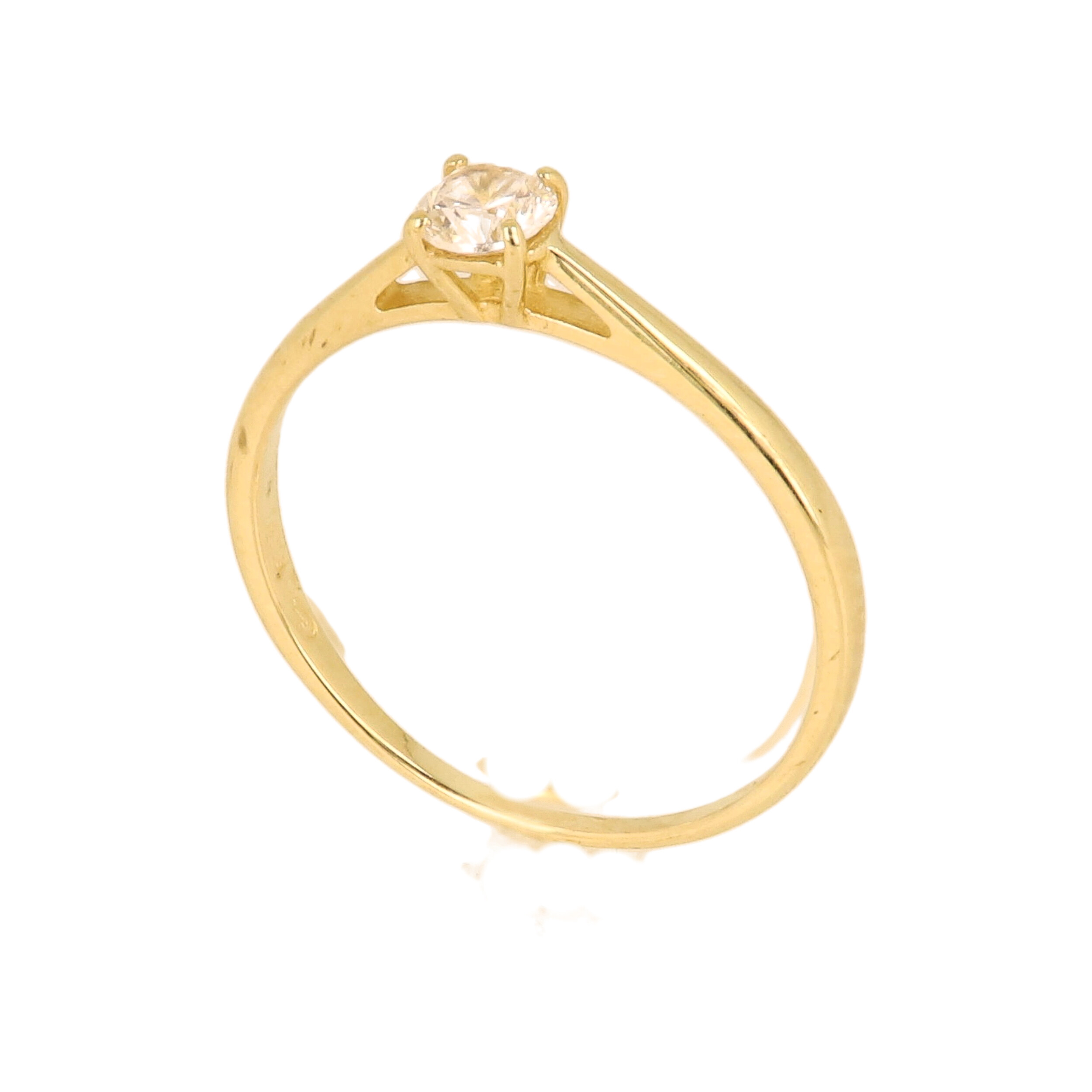 Zlatý zásnubní prsten s jemným čirým kamenem ?